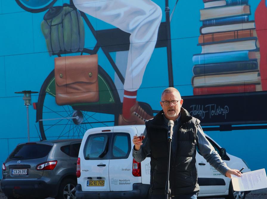 Tak til alle, der var med til at gøre indvielsen af Jakob Tolstrups vægmaleri og fejringen af Grenaa biblioteks 150 års fødselsdag til en festlig dag.