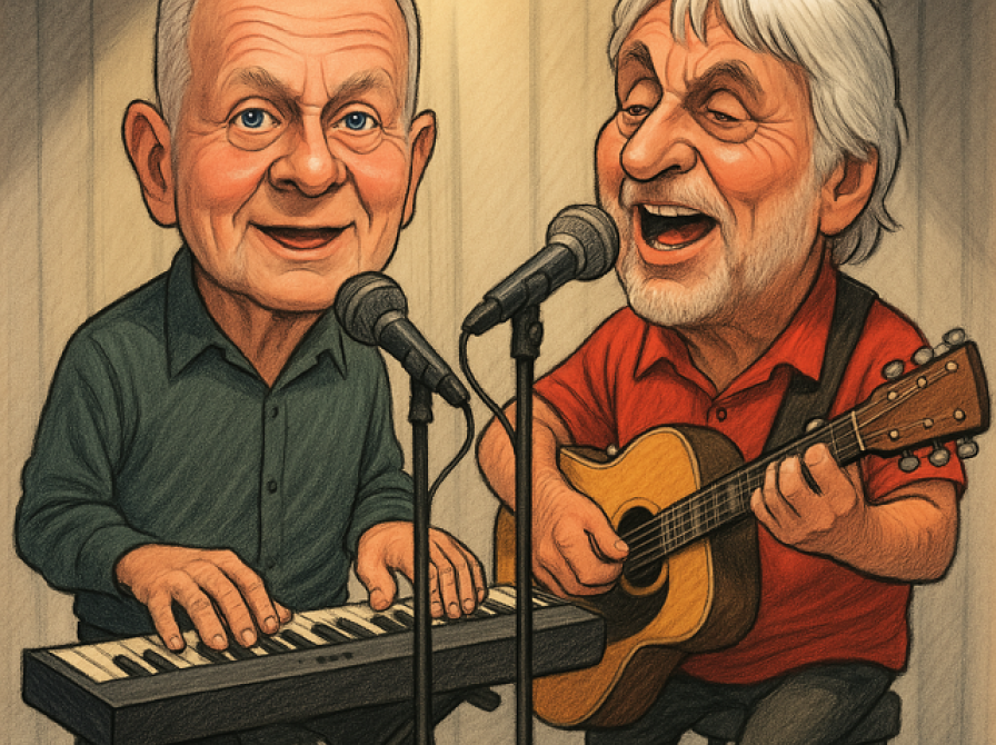 Tommy og Uffe bakkes op af Kulturperronens faste husorkester, “The Fjots”.