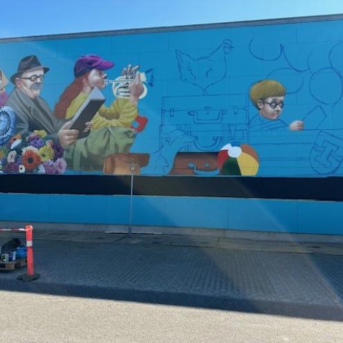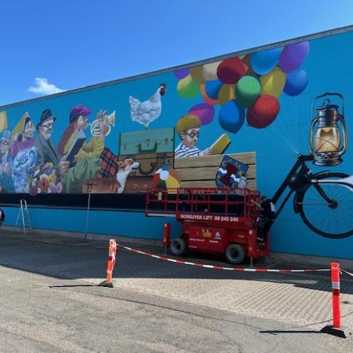 Vægmaleri pryder Grenaa Biblioteks nordside
